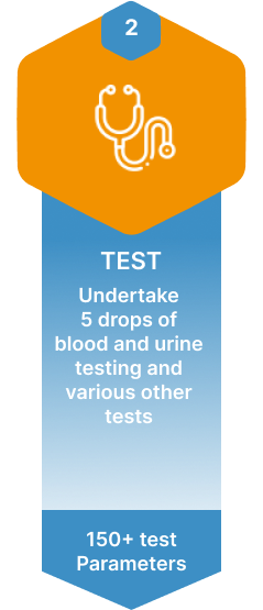 Collect 150+ health data points in under 15 minutes, using just 5 drops of blood and urine.